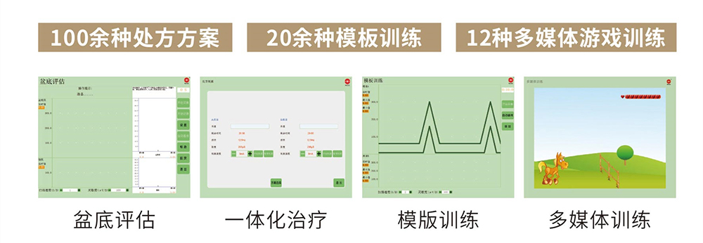 适用于脑卒中、脑外伤、脊髓损伤、周围神经损伤、小儿脑瘫、小儿麻痹、颈肩腰腿痛、骨关节及肌肉疾患、肌痉挛、肌萎缩、肌力减退或无力、韧带损伤、术后伤口愈合、产后盆底恢复、(急迫性、压力性)尿失禁、尿潴留、盆底综合征、前列腺痛、吞咽功能障碍等疾病的康复治疗。